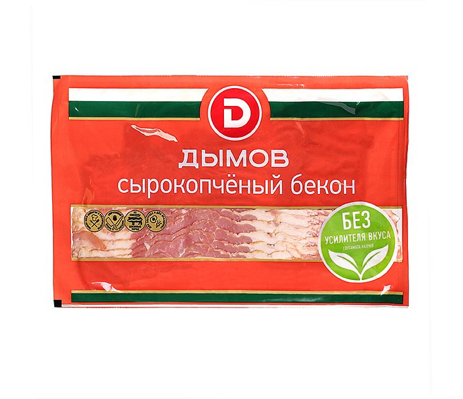 Сырокопченый бекон — это деликатес из качественной свинины с прослойками жира. Благодаря копчению на натуральной буковой щепе он приобретает насыщенный вкус и пряный аромат.